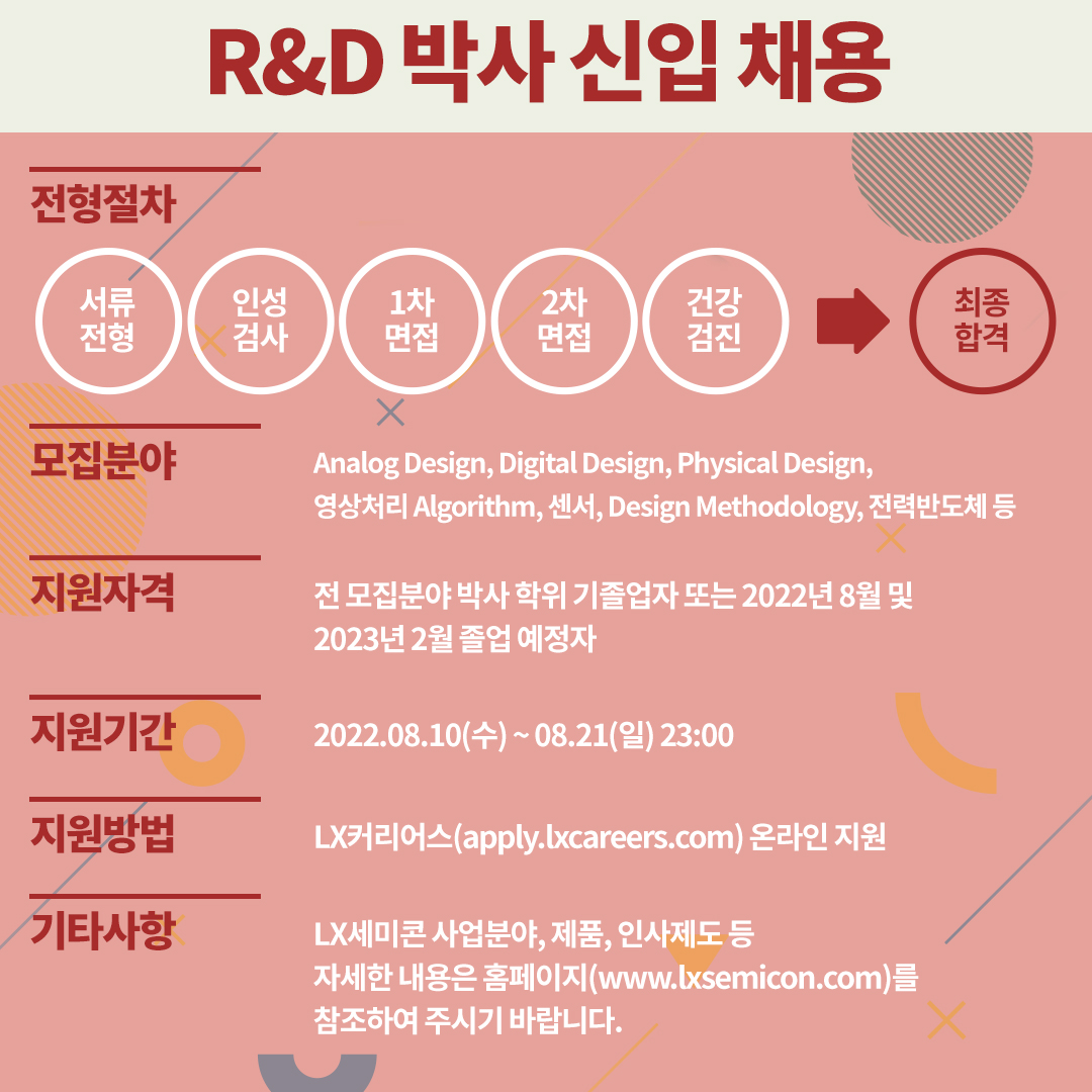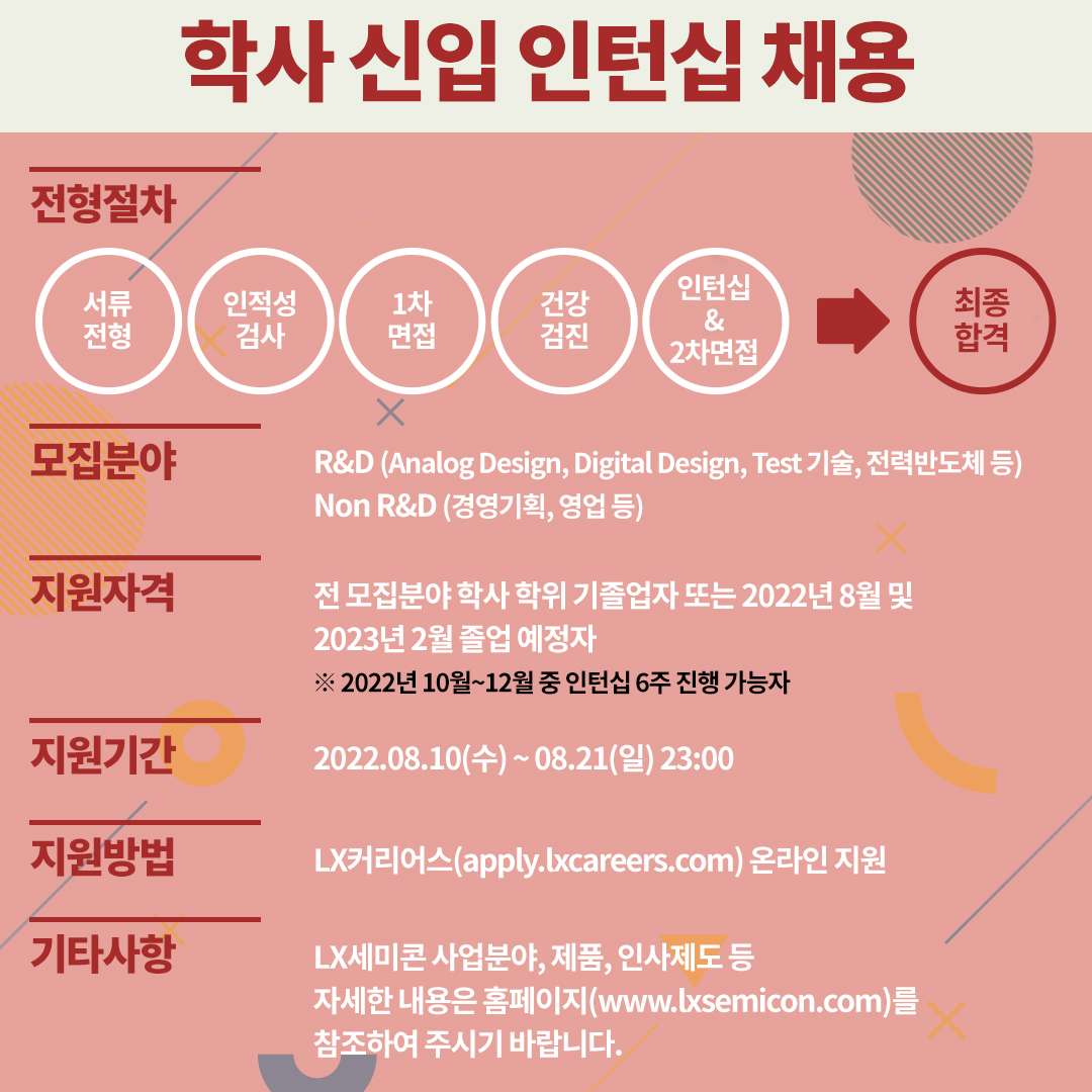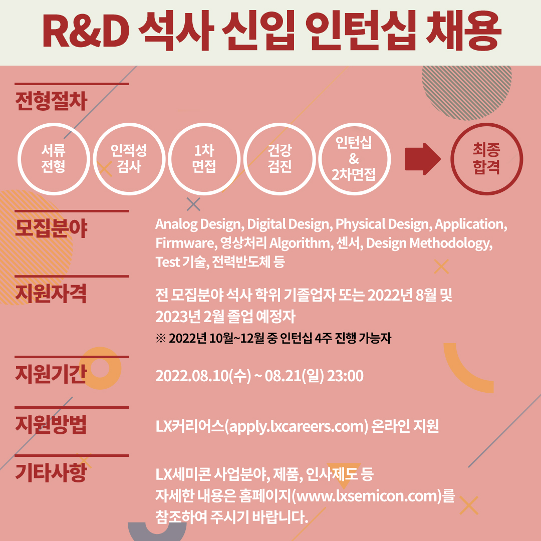 [신입 채용공고] 1등 반도체 설계 회사 LX세미콘과 함께 할 신입 모집 중! (~08/21)
