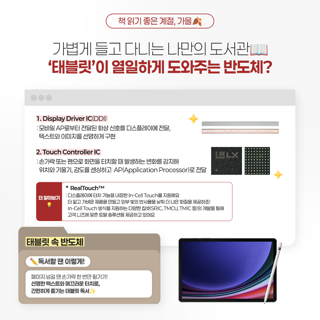 터치를 정밀하게 인식하는 반도체 기술이 들어 있어요⚙️