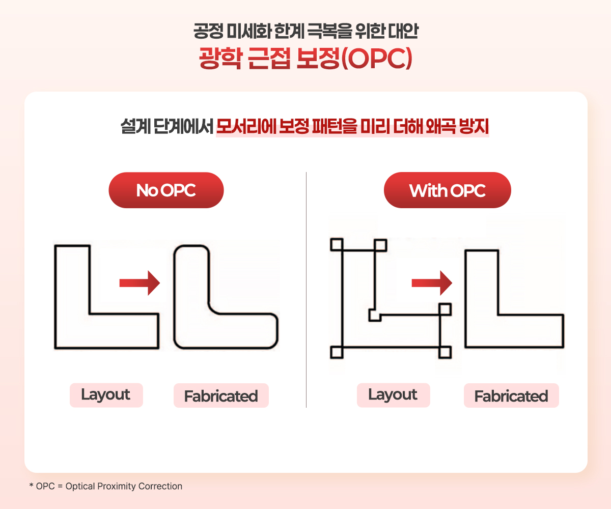 그러나 2000년대 들어 공정 기술이 나노미터(nm) 단위로 극도로 미세화되면서 이 완벽해 보이던 분업 구조에 균열이 생기기 시작했다. 이른바 ‘무어의 법칙’이 물리적 한계에 부딪힌 것이다. 빛의 파장보다 회로 선폭이 좁아지면서 빛이 회절하는 현상 등 물리적 간섭이 심해졌고, 설계도상으로는 완벽한 직각형이라도 실제 웨이퍼 상에서는 뭉개지거나 끊어지는 현상이 발생했다. 이를 해결하기 위해 단순한 디자인 룰을 넘어선 정교한 보정 기술이 필요해졌다.