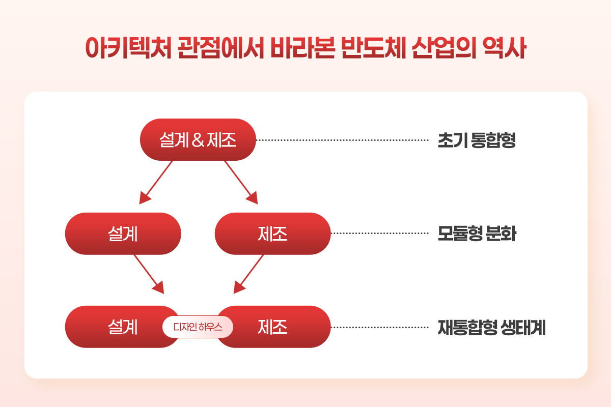 결국 오늘날의 반도체 산업은 미드와 콘웨이가 설계와 제조를 ‘분리’하여 산업의 양적 팽창을 이끌었다면, 이제는 물리적 한계를 극복하기 위해 그 둘을 다시 ‘연결’하는 새로운 아키텍처가 필요해진 것이다. 이는 제품의 기술적 특성(아키텍처)이 변하면, 그 제품을 만드는 산업의 구조(비즈니스 아키텍처)도 반드시 변한다는 사실을 이야기해 준다.