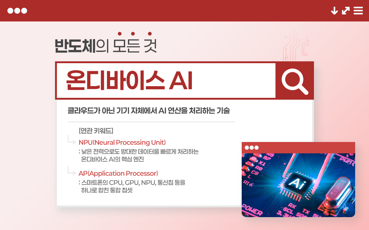이번 ‘반도체의 모든 것’에서는 우리 일상을 획기적으로 바꾸고 있는 온디바이스 AI가 무엇인지, 그리고 왜 전 세계 IT 산업이 이 기술에 주목하고 있는지 핵심만 쏙쏙 뽑아 알려드릴게요!