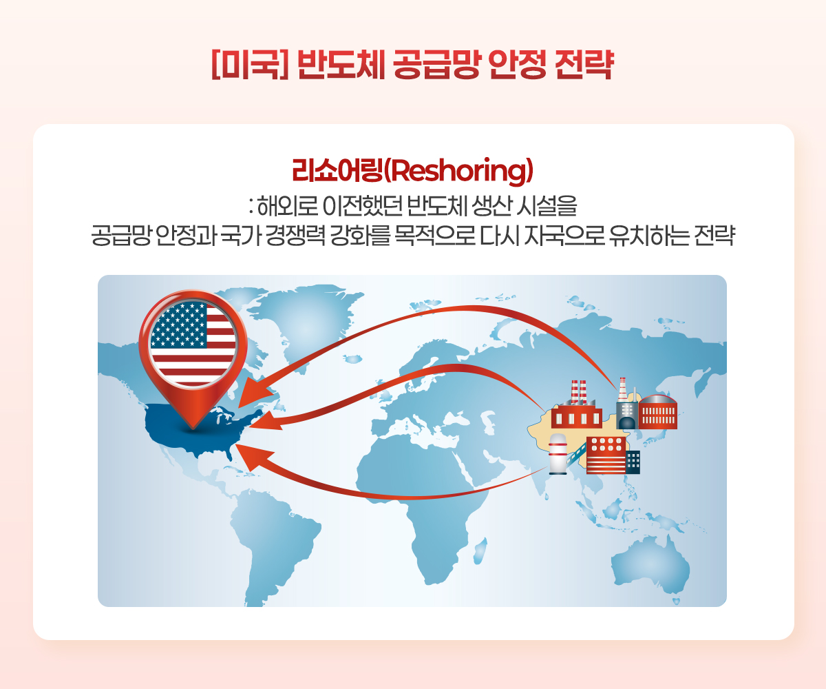 미국의 스타게이트 프로젝트가 추구하는 AI 패권 전략은 반드시 안정적인 반도체 공급망을 필요로 한다. 미국이 동맹국들의 공급망 상당수를 아예 미국으로 가져오는 리쇼어링(reshoring) 전략을 빠르게 추진하는 이유다.