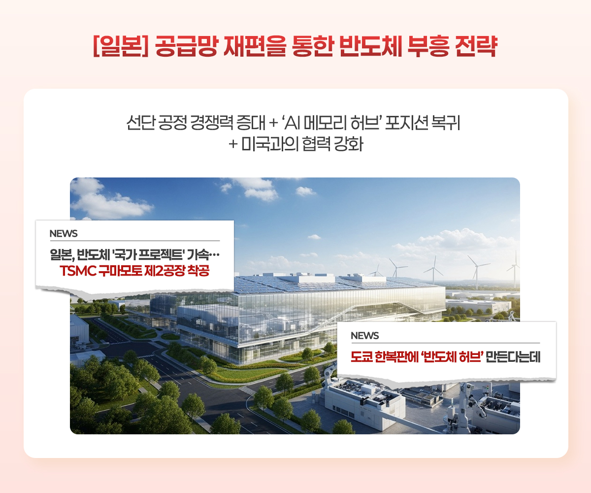 글로벌 반도체 공급망에 여러 변수가 생기면서 재기의 기회를 노리는 국가는 일본이다. 특히 일본의 반도체 산업 전략은 한마디로 “선단 노드 복귀 + AI 메모리 허브 + 미국의 동맹국으로서 핵심 인프라 파트너 확장”으로 볼 수 있다. 일본의 반도체 부흥 전략에서 홋카이도의 2나노 로직반도체 팹은 일본이 다시 선단 공정 클럽으로 돌아오겠다는 의지를 상징하는 국가 주도 프로젝트다.