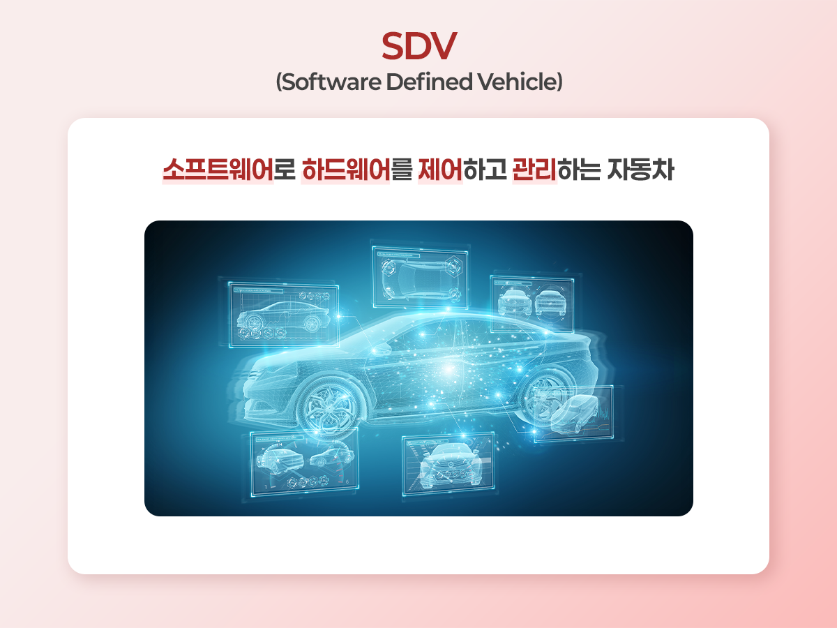 ▪SDV(Software Defined Vehicle) : 말 그대로 ‘소프트웨어로 하드웨어를 제어하고 관리하는 자동차’를 뜻해요.